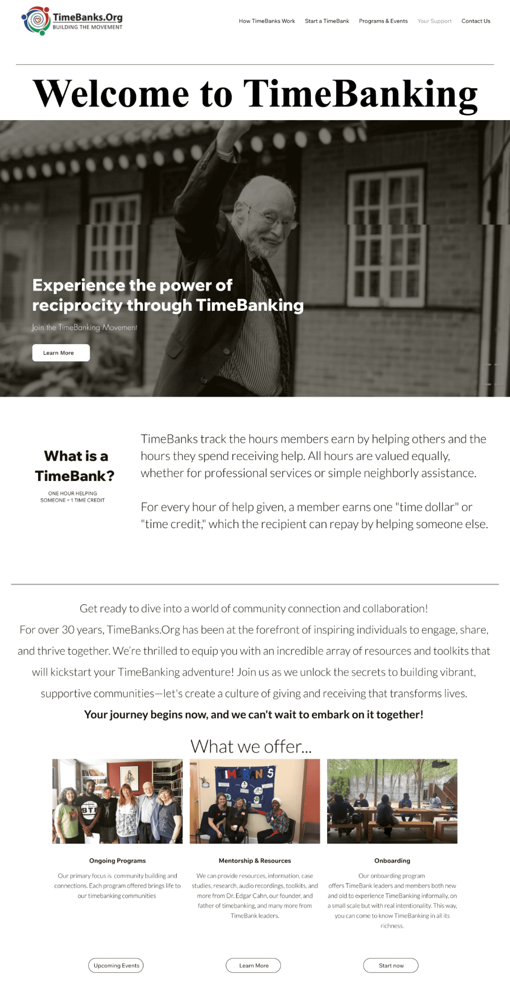 TimeBanks.org's outdated design, fragmented content, and lack of interactivity made it difficult for users to find local TimeBanks, trust the platform, and stay engaged. How might we redesign TimeBanks.org to create a trusted platform that empowers people to exchange time and boost community connections?